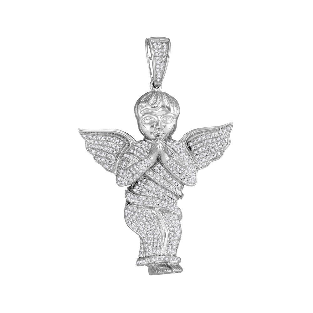 10kt White Gold Mens Round Diamond Angel Cherub Charm Pendant 1.00 Cttw