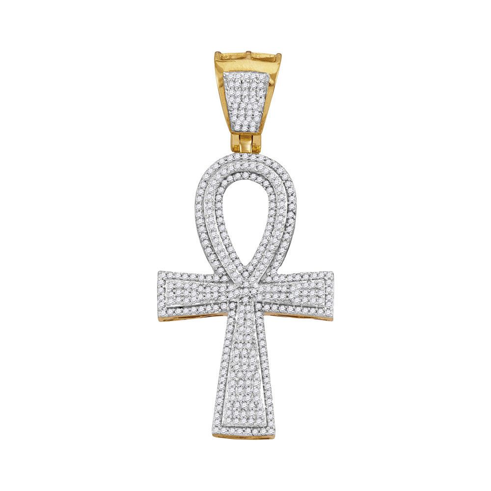 REF-63X5T ---- 1 CTW Mens Round Diamond Ankh Flared Cross Charm Pendant 10kt Yellow Gold