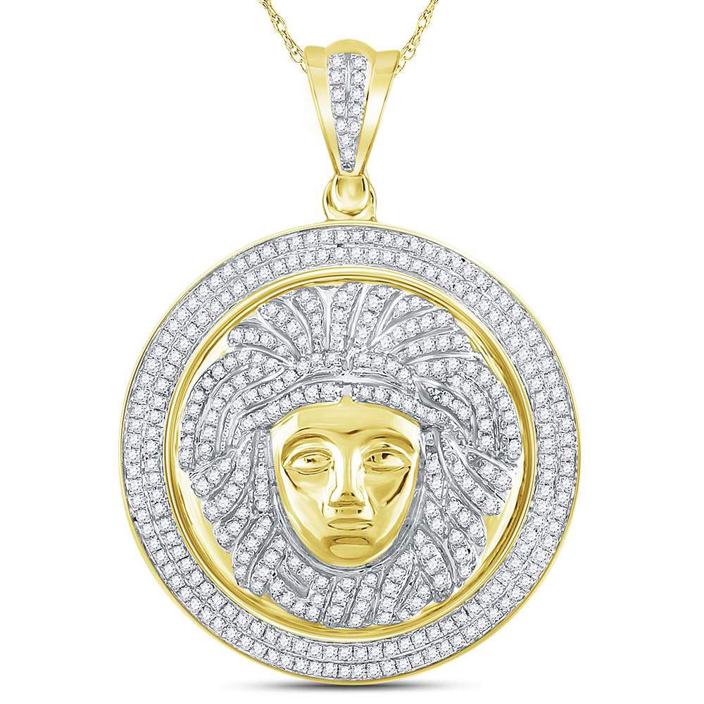 10kt Yellow Gold Mens Round Diamond Gorgon Medusa Circle Medallion Charm Pendant 1.00 Cttw