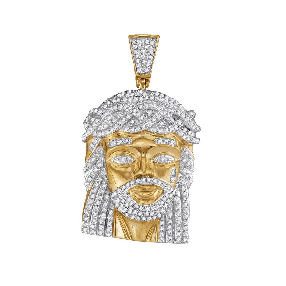10kt Yellow Gold Mens Round Diamond Jesus Christ Messiah Charm Pendant 1.00 Cttw