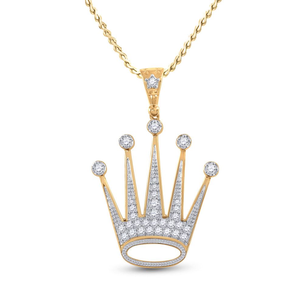 REF-88Y5N - 1 CTW Mens Round Diamond King Crown Charm Pendant 10kt Yellow Gold - REF-88Y5N