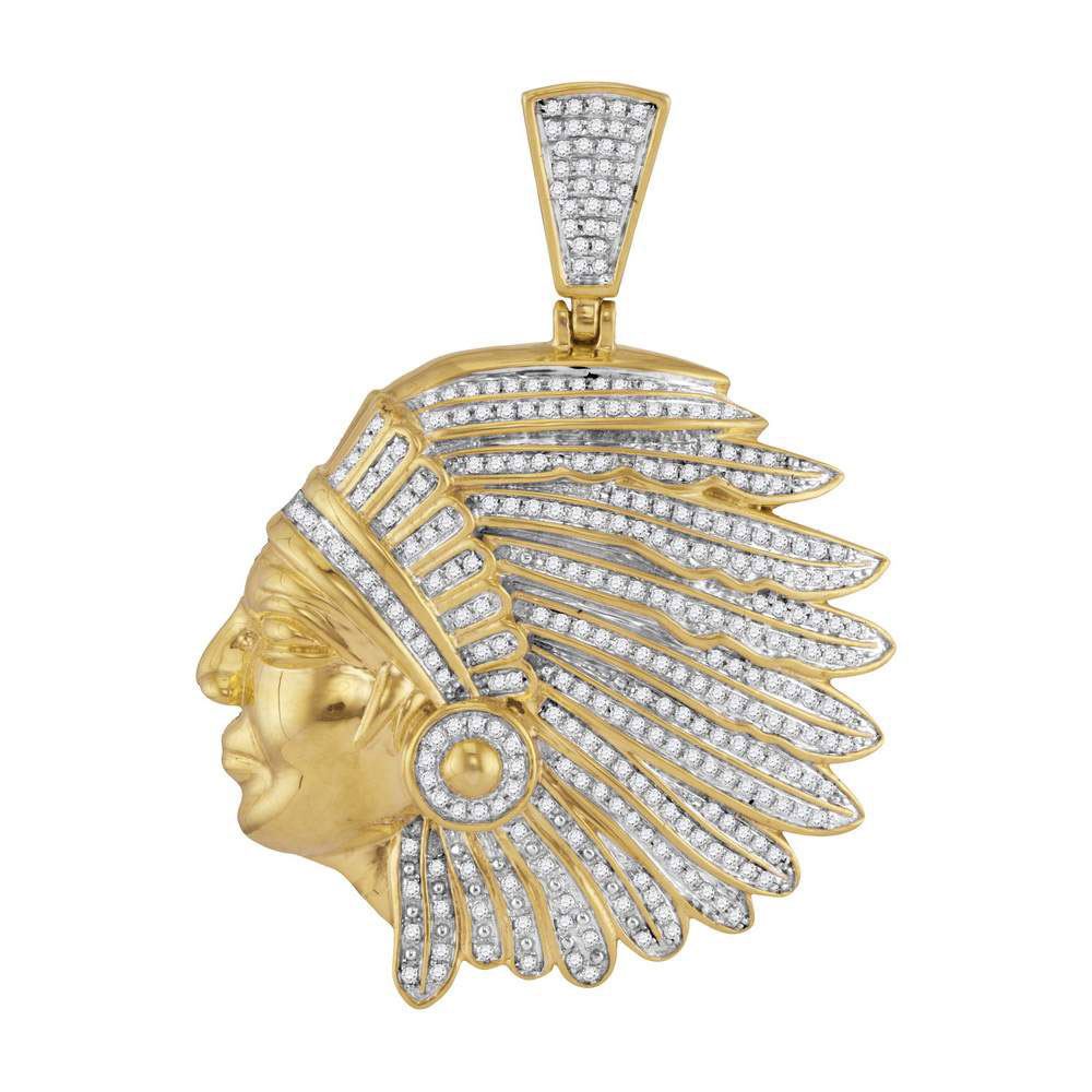 REF-136F4W - 1 CTW Mens Round Diamond Native Chief Charm Pendant 10kt Yellow Gold - REF-136F4W