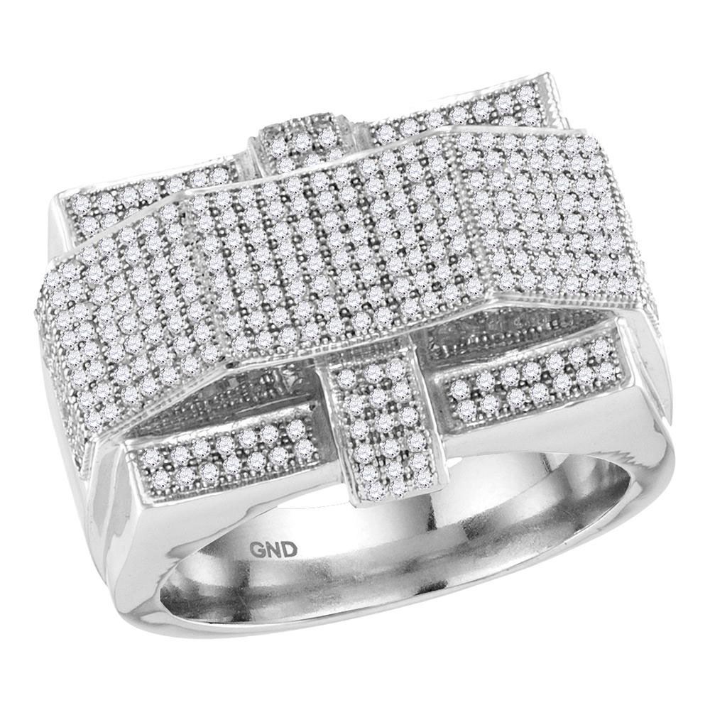 10kt White Gold Mens Round Diamond Rectangle Arched Cluster Ring 1.00 Cttw