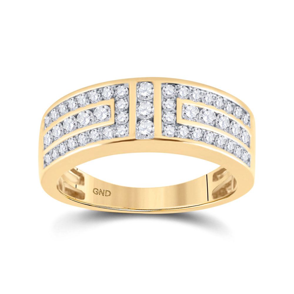 REF-95X5T - 1 CTW Mens Round Diamond Symmetrical Wedding Band Ring 14kt Yellow Gold - REF-95X5T