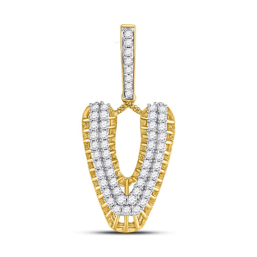 10kt Yellow Gold Mens Round Diamond "V" Letter Charm Pendant 1.00 Cttw