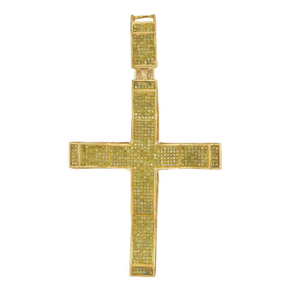 REF-87X2Y- SKU: GD68117 ---- 1 CTW Mens Yellow Color Diamond Roman Cross Charm Pendant 10KT Yellow Gold