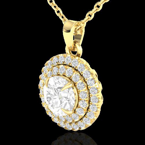 REF-139H5A -21543 ---- 1 CTW Micro Pave VS/SI Diamond Solitaire Necklace Double Halo 18K Yellow Gold ---- Luxury Designer Brand Necklace Appraised at $7,650 Certificate Number US21543 18k Yellow gold, Necklace Size is 16 Inches, Necklace measuring approx. 7/16"X7/16" , weighing in total approx. 3.8 grams. Made in the USA and is stamped 18k, Main stone 0.65 carat total weight containing 1 pieces of H-J color with VS/SI quality Round shape cut Diamond , Stone #2 0.35 carat total weight containing 42 pieces of H-I color with VS/SI quality Round shape cut Diamond