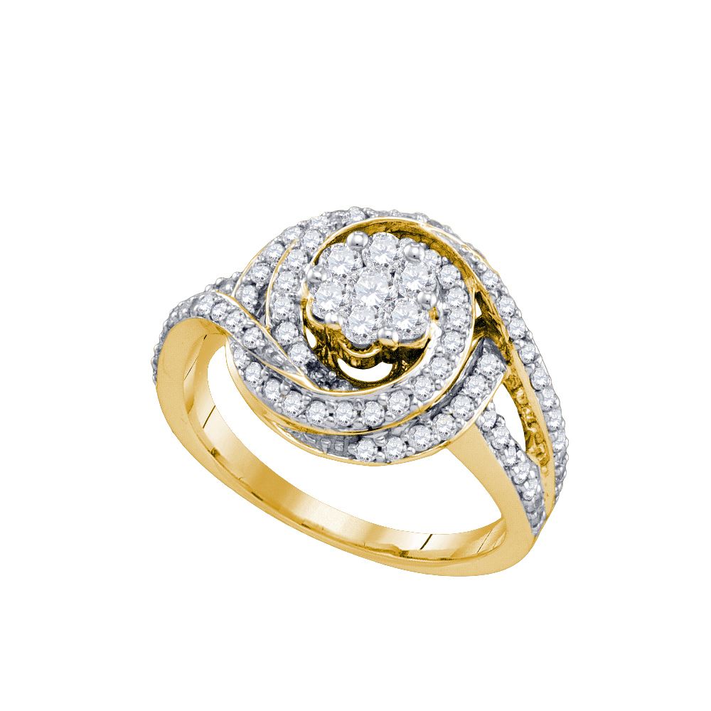 REF-119F9M ---- 1 CTW Natural Diamond Flower Cluster Bridal Engagement Ring 10K Yellow Gold - SKU: GD74362