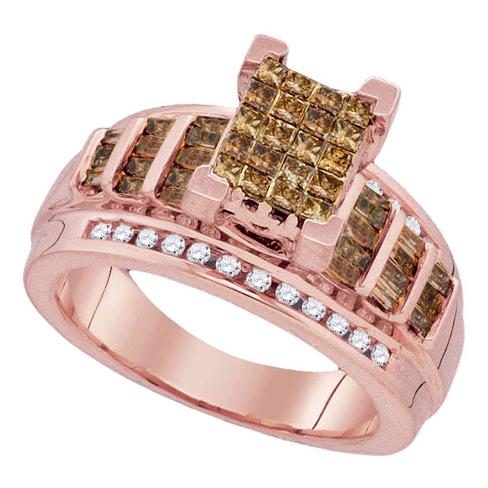 REF-63R5X - 1 CTW Princess Brown Diamond Cluster Bridal Wedding Engagement Ring 10kt Rose Gold - REF-63R5X