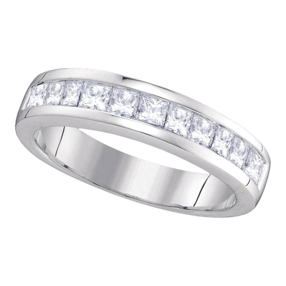 REF-107K9W- SKU: GD30482 ---- 1 CTW Princess Channel-set Diamond Single Row Ring 14KT White Gold