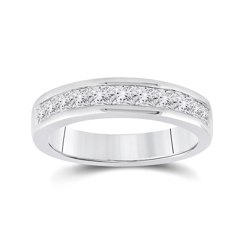 REF-95R9H ---- 1 CTW Princess Channel-set Diamond Single Row Wedding Ring 14kt White Gold