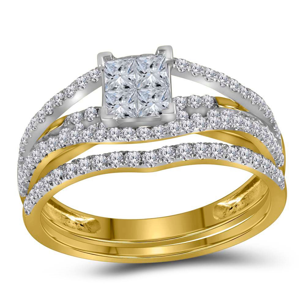REF-75Y2X- SKU: GD116664 ---- 1 CTW Princess Diamond Bridal Engagement Ring 10KT Yellow Gold