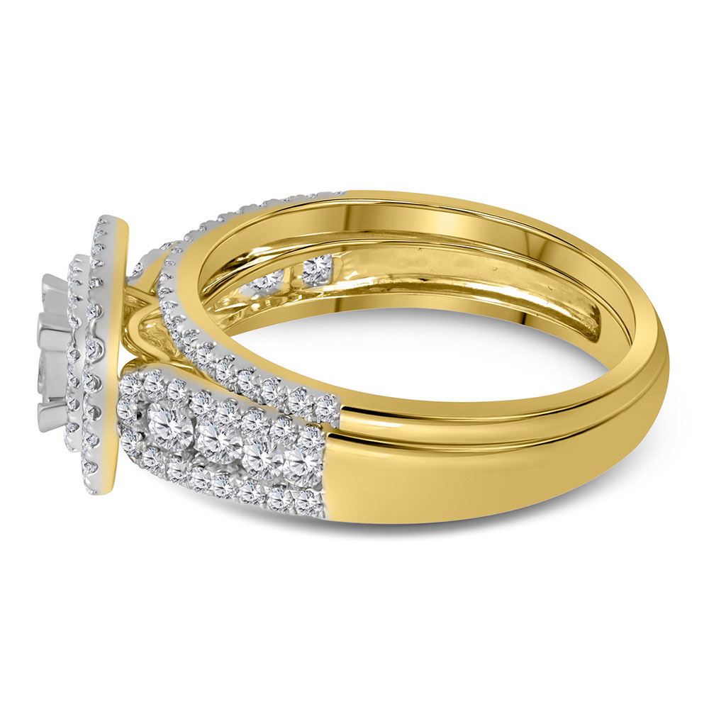 14kt Yellow Gold Womens Princess Diamond Cluster Halo Bridal Wedding Engagement Ring Band Set 1.00 Cttw