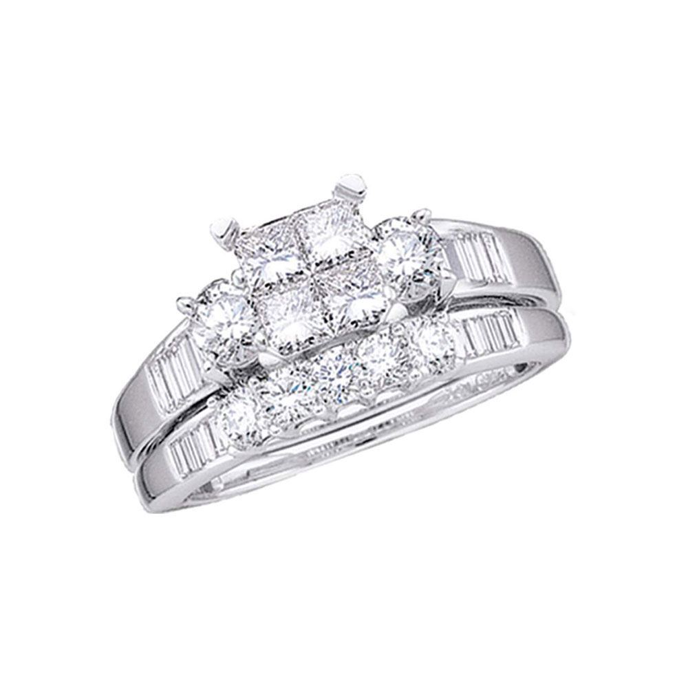 REF-109N6A - 1 CTW Princess Diamond Bridal Wedding Ring 14kt White Gold - REF-109N6A