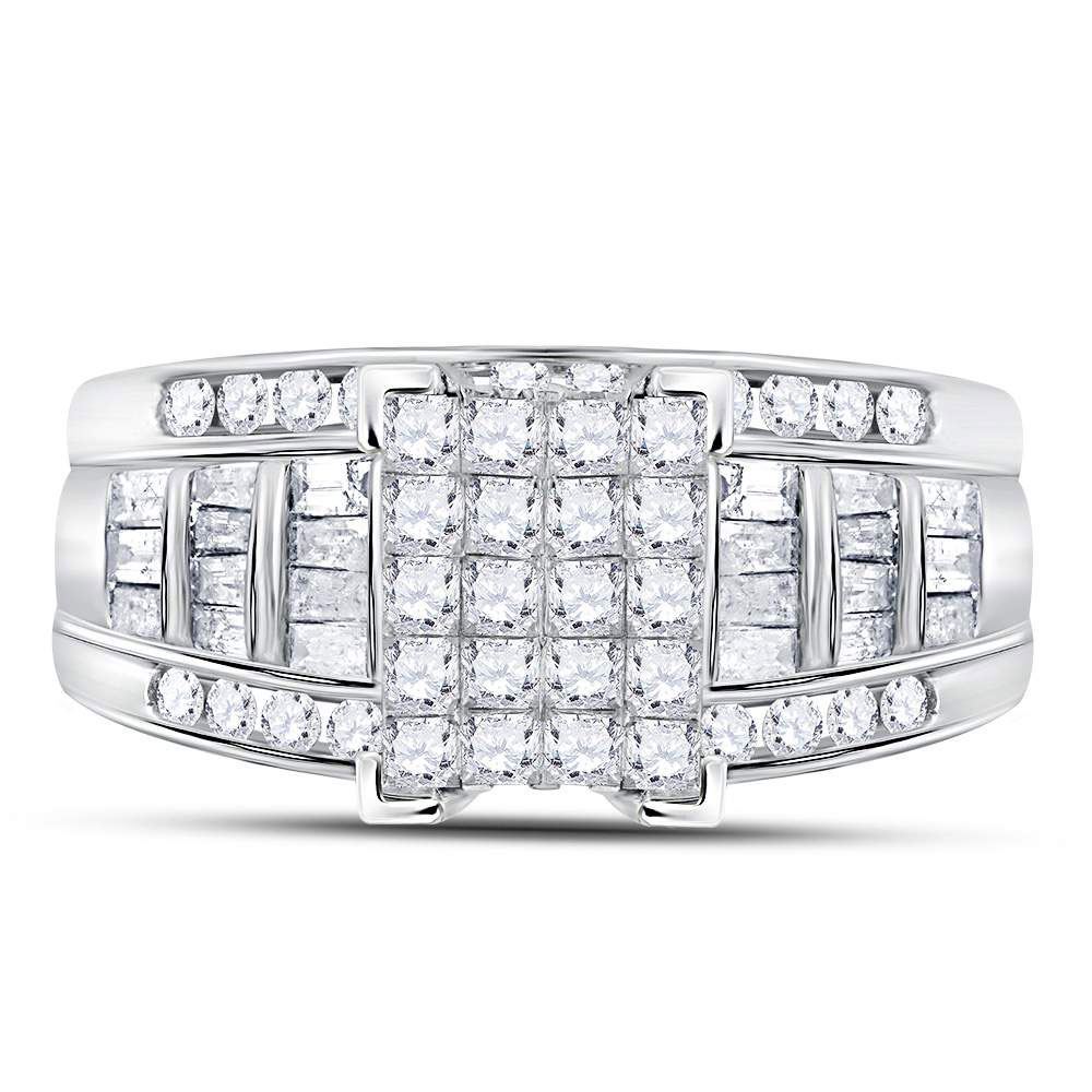REF-71X9T ---- 1 CTW Princess Diamond Cluster Bridal Wedding Engagement Ring 14kt White Gold