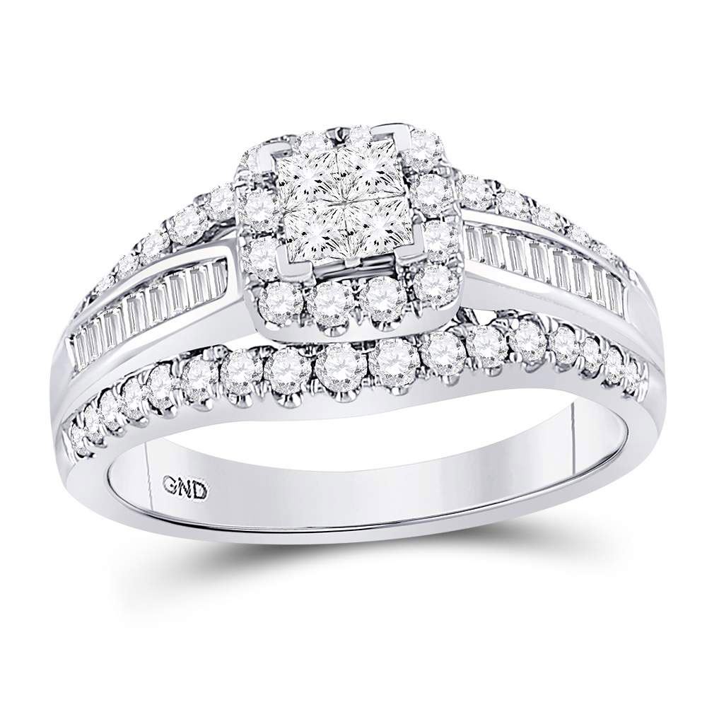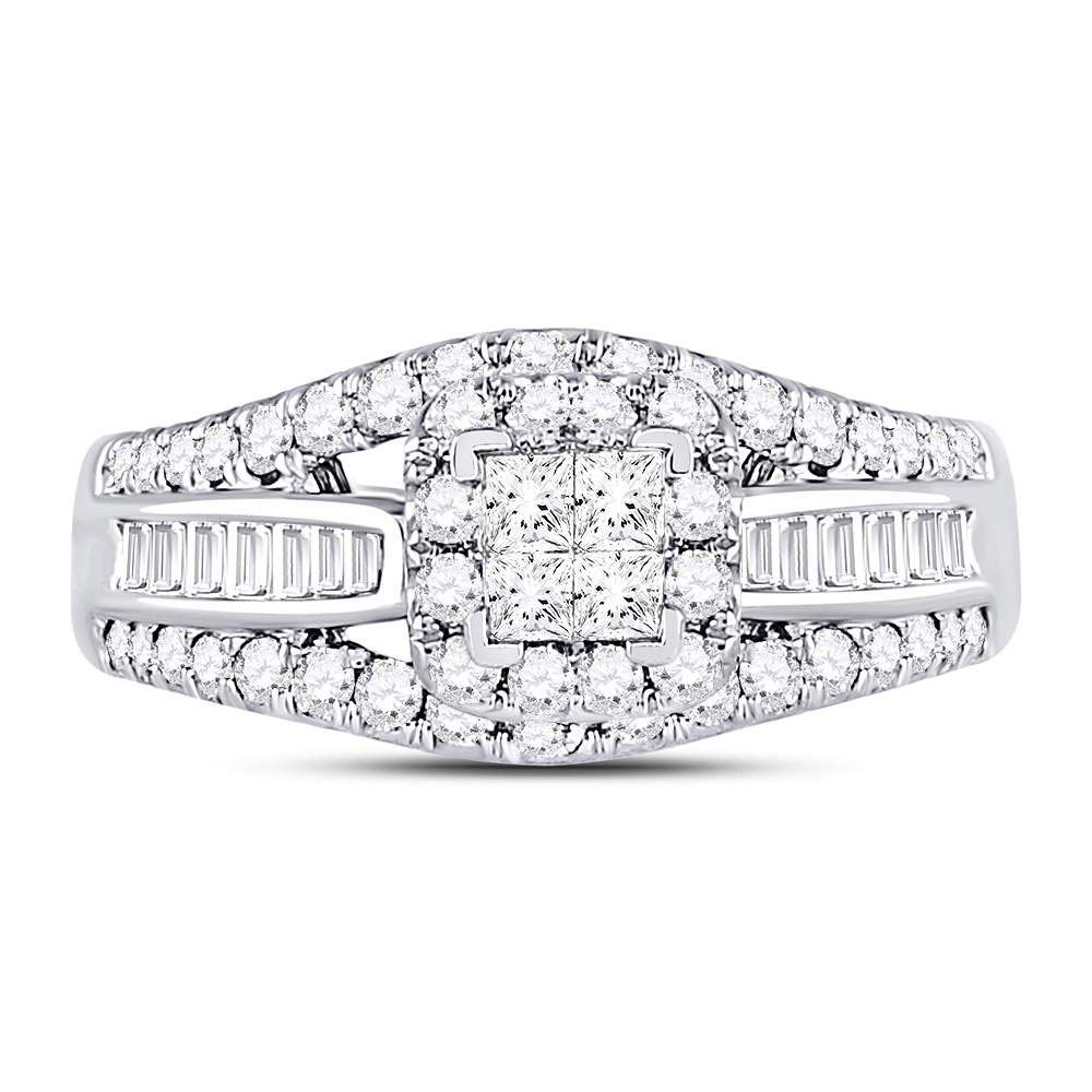 14kt White Gold Womens Princess Diamond Cluster Bridal Wedding Engagement Ring 1.00 Cttw
