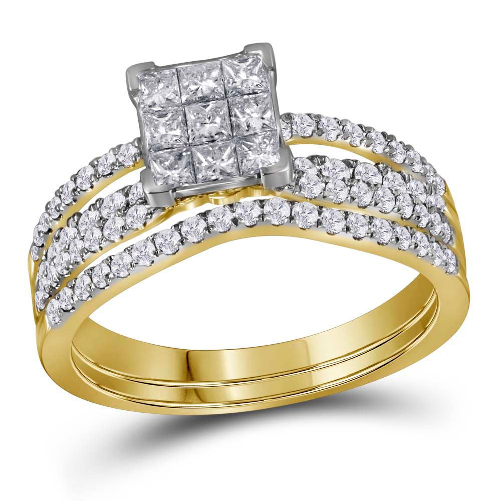REF-88H5R - 1 CTW Princess Diamond Cluster Bridal Wedding Ring 14kt Yellow Gold - REF-88H5R