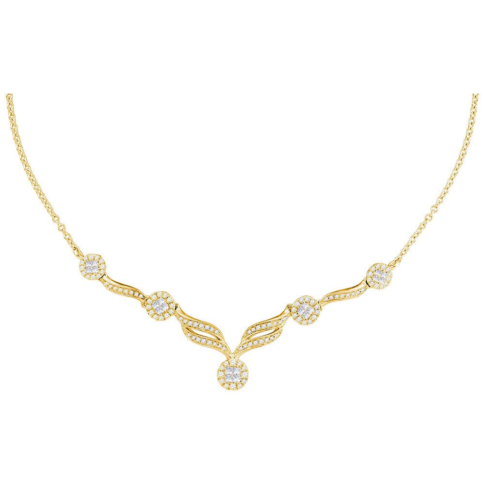 14kt Yellow Gold Womens Princess Diamond Cluster Luxury 18" Necklace 1.00 Cttw