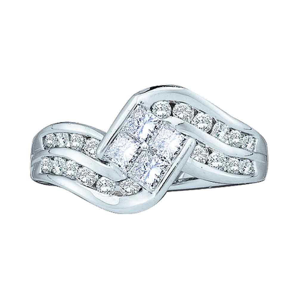 REF-87X2Y- SKU: GD40061 ---- 1 CTW Princess Diamond Cluster Ring 14KT White Gold