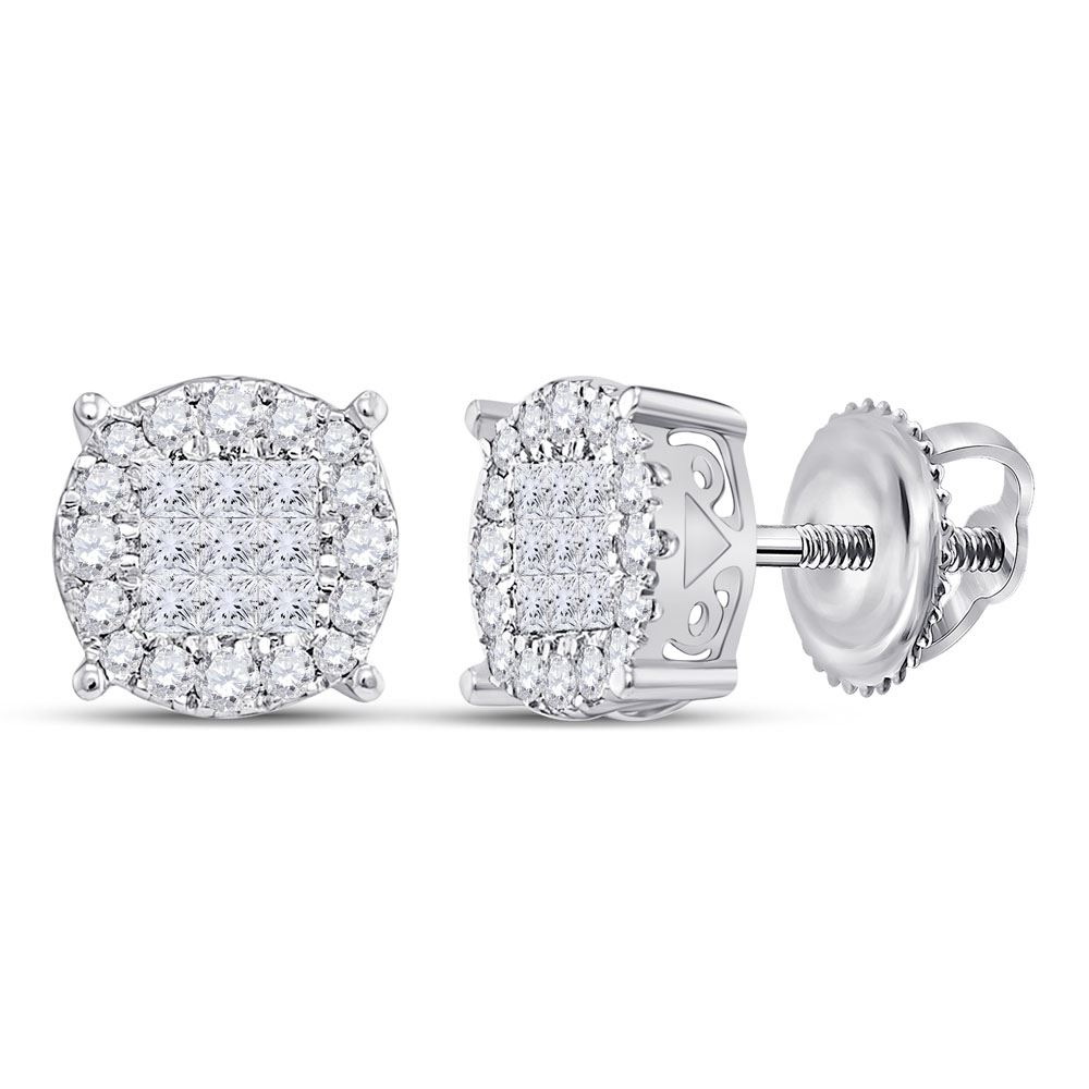 14kt White Gold Womens Princess Diamond Fashion Cluster Earrings 1.00 Cttw