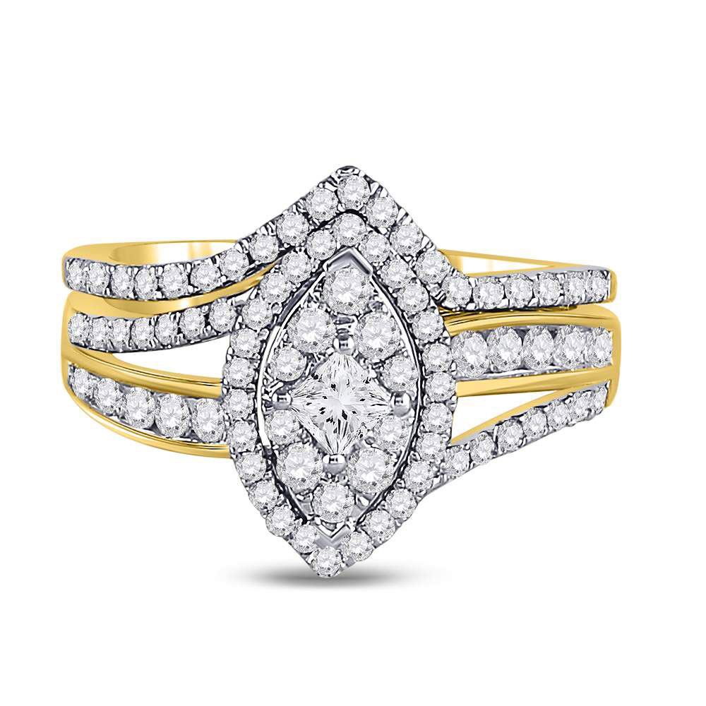 14kt Yellow Gold Womens Princess Diamond Oval Bridal Wedding Engagement Ring Band Set 1.00 Cttw