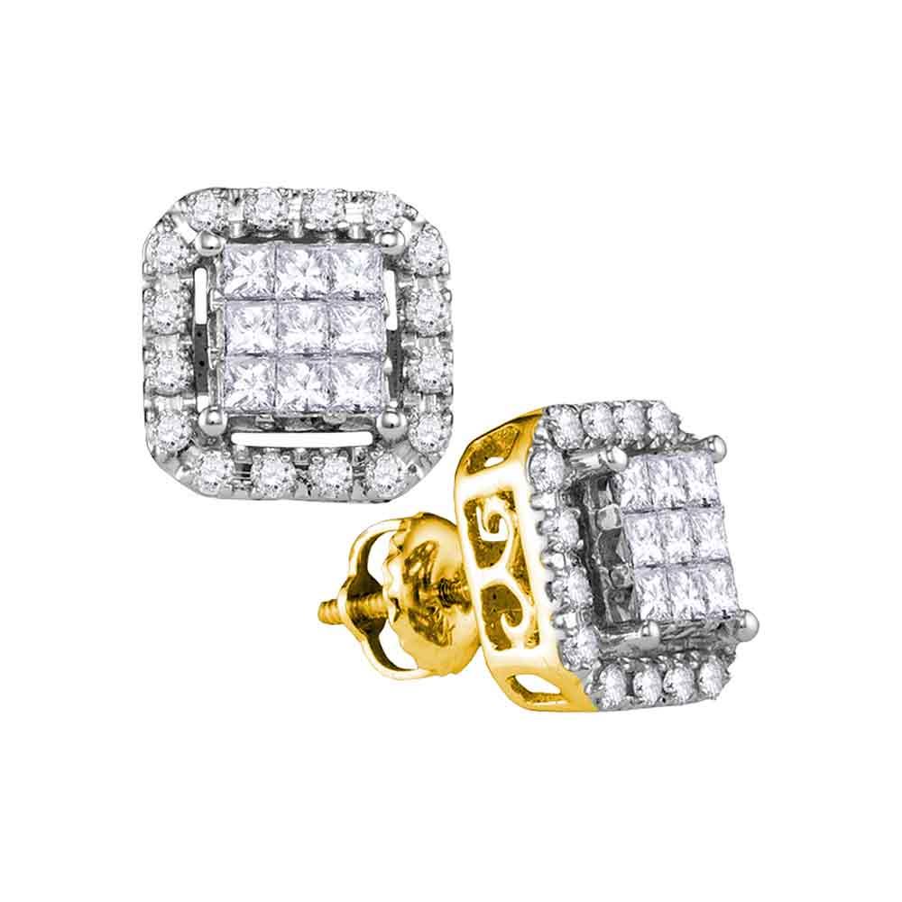 REF-101N9F- SKU: GD107351 ---- 1 CTW Princess Diamond Square Cluster Stud Earrings 14KT Yellow Gold