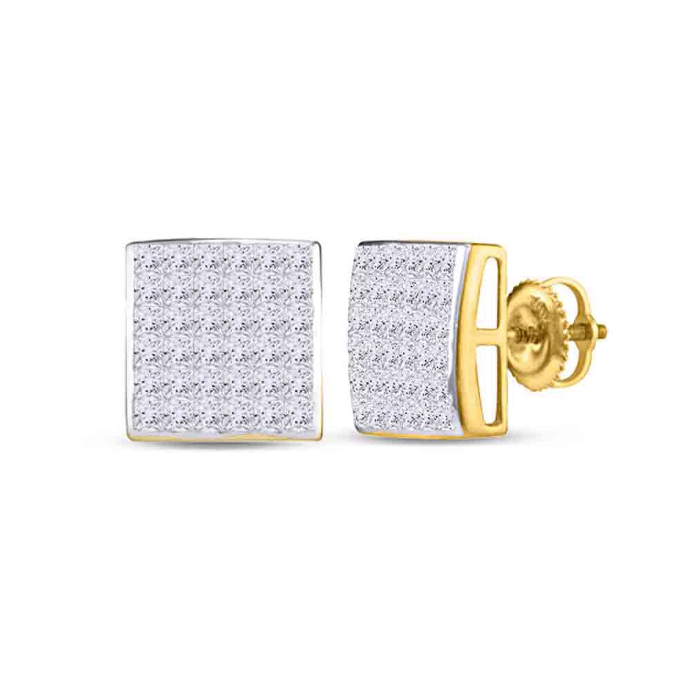 14kt Yellow Gold Womens Princess Diamond Square Cluster Stud Earrings 1.00 Cttw