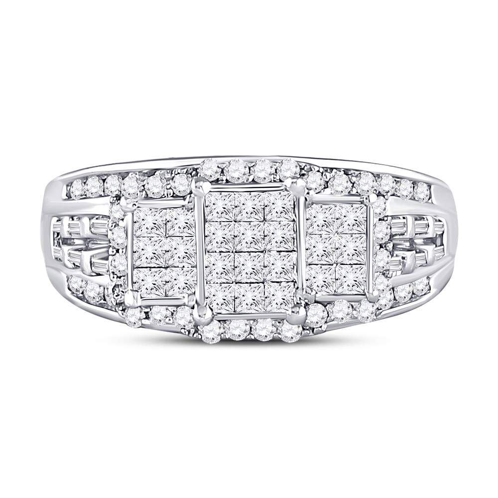 10kt White Gold Womens Princess Diamond Triple Cluster Ring 1.00 Cttw