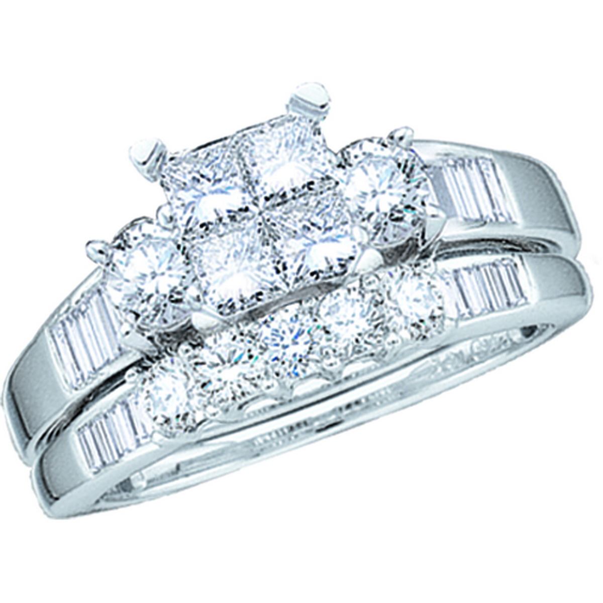 REF-119F9M ---- 1 CTW Princess Natural Diamond Bridal Ring 14K White Gold - SKU: GD38021