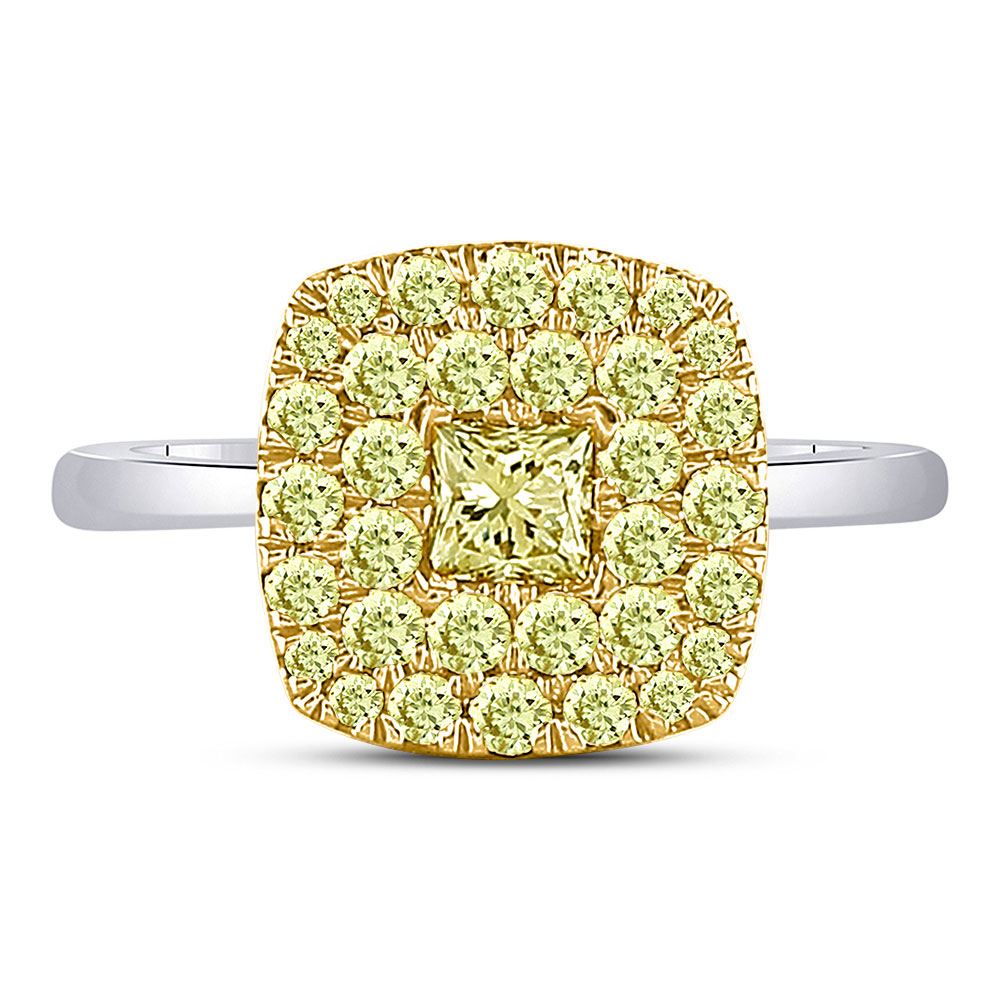 14kt Two-tone Gold Womens Princess Yellow Diamond Solitaire Square Frame Ring 1.00 Cttw