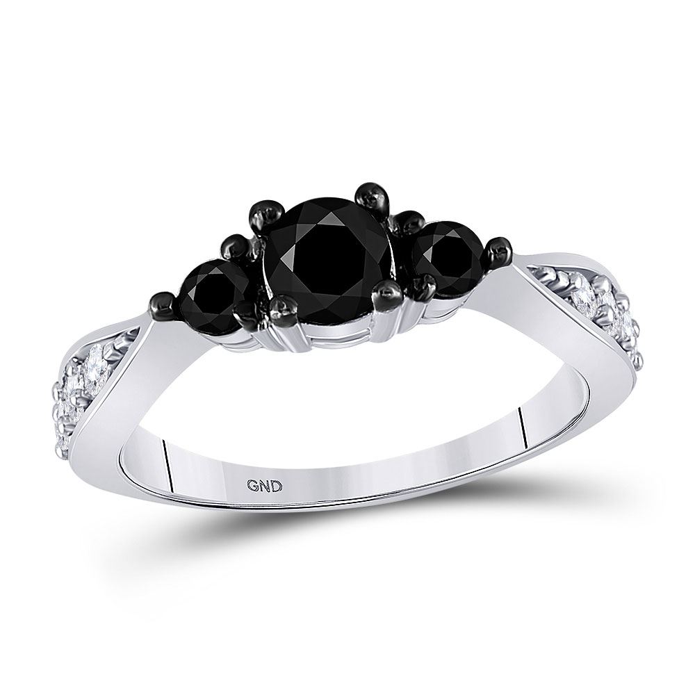 REF-36V2Y - 1 CTW Round Black Color Enhanced Diamond 3-stone Bridal Wedding Ring 10kt White Gold - REF-36V2Y