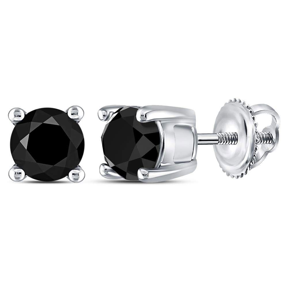 REF-16H8W ---- 1 CTW Round Black Color Enhanced Diamond Solitaire Earrings 10kt White Gold