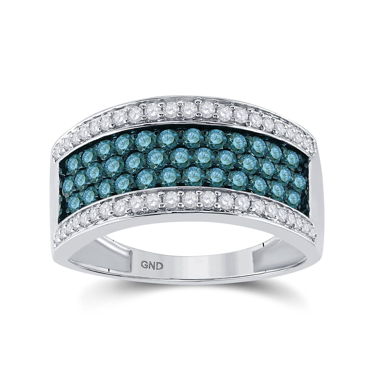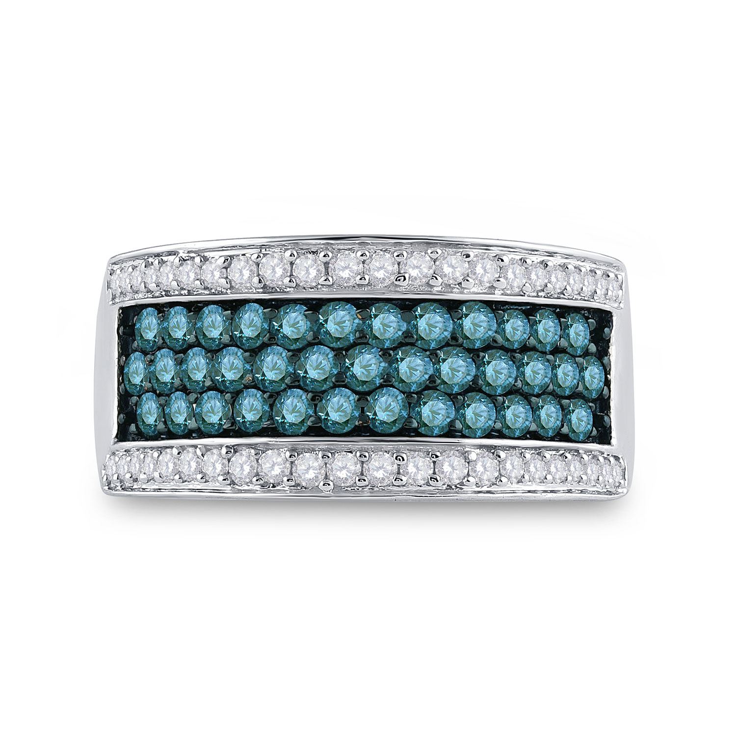 10kt White Gold Womens Round Blue Color Enhanced Diamond Triple Stripe Band 1.00 Cttw