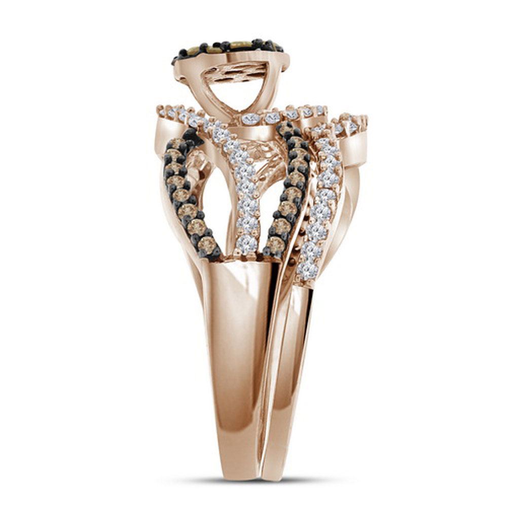 10kt Rose Gold Womens Round Brown Diamond Cluster Bridal Wedding Engagement Ring Band Set 1.00 Cttw
