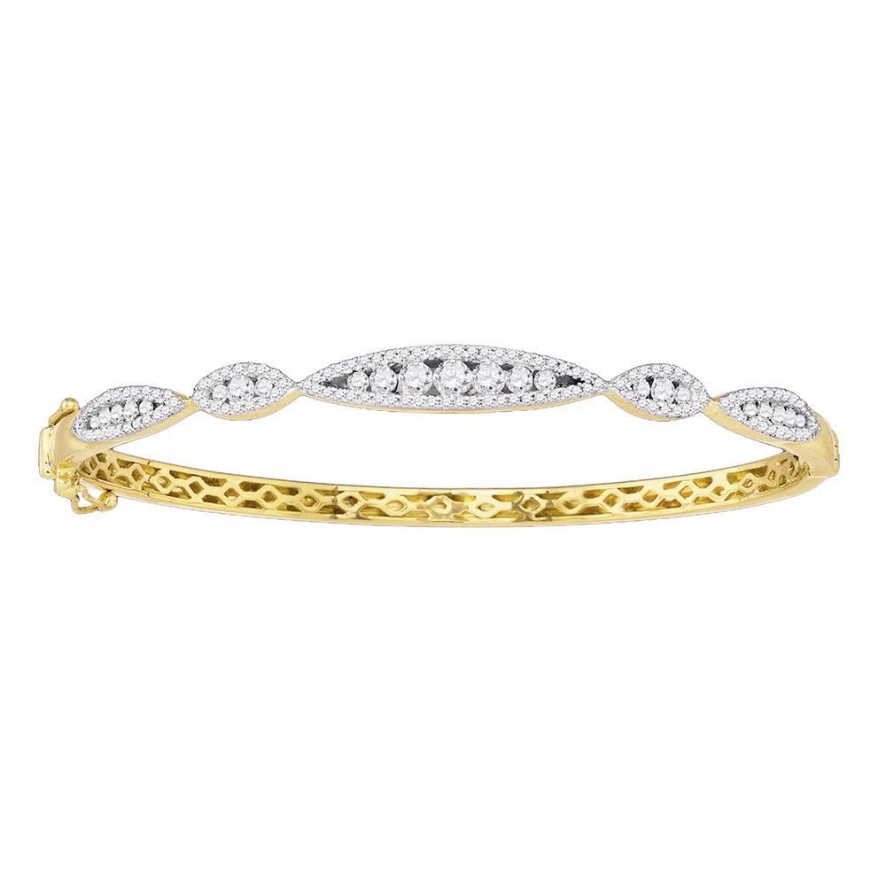 10kt Yellow Gold Womens Round Diamond Bangle Bracelet 1.00 Cttw
