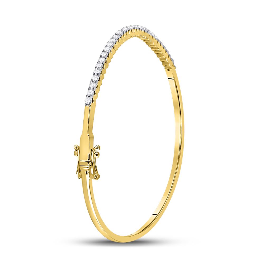 14kt Yellow Gold Womens Round Diamond Bangle Bracelet 1.00 Cttw