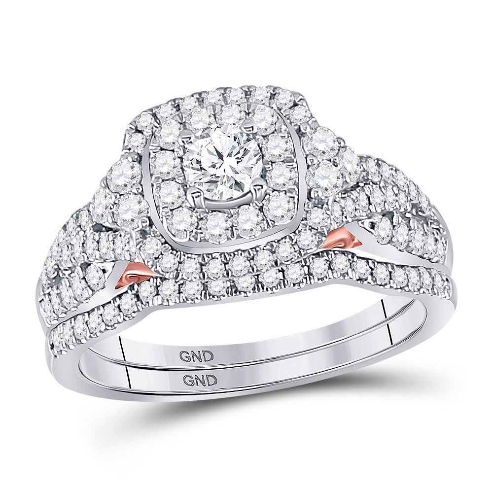 14kt Two-tone Gold Womens Round Diamond Bridal Wedding Engagement Ring Band Set 1.00 Cttw (Certified)