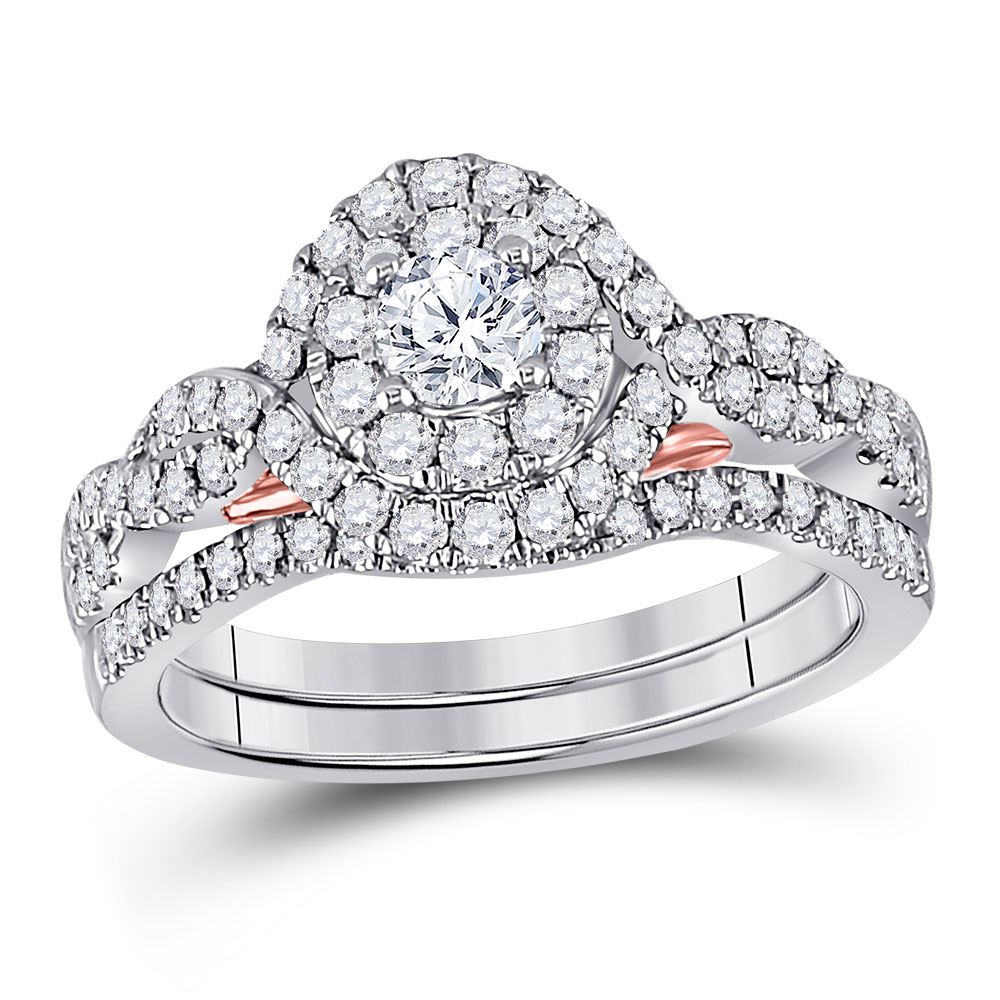 REF-122M6F - 1 CTW Round Diamond Bridal Wedding Ring 14kt Two-tone Gold - REF-122M6F