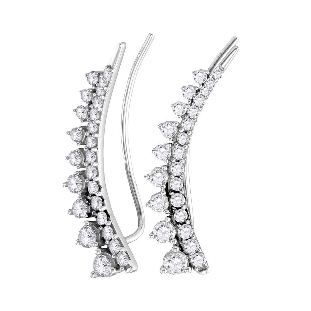 REF-54M3A ---- 1 CTW Round Diamond Climber Earrings 10kt White Gold