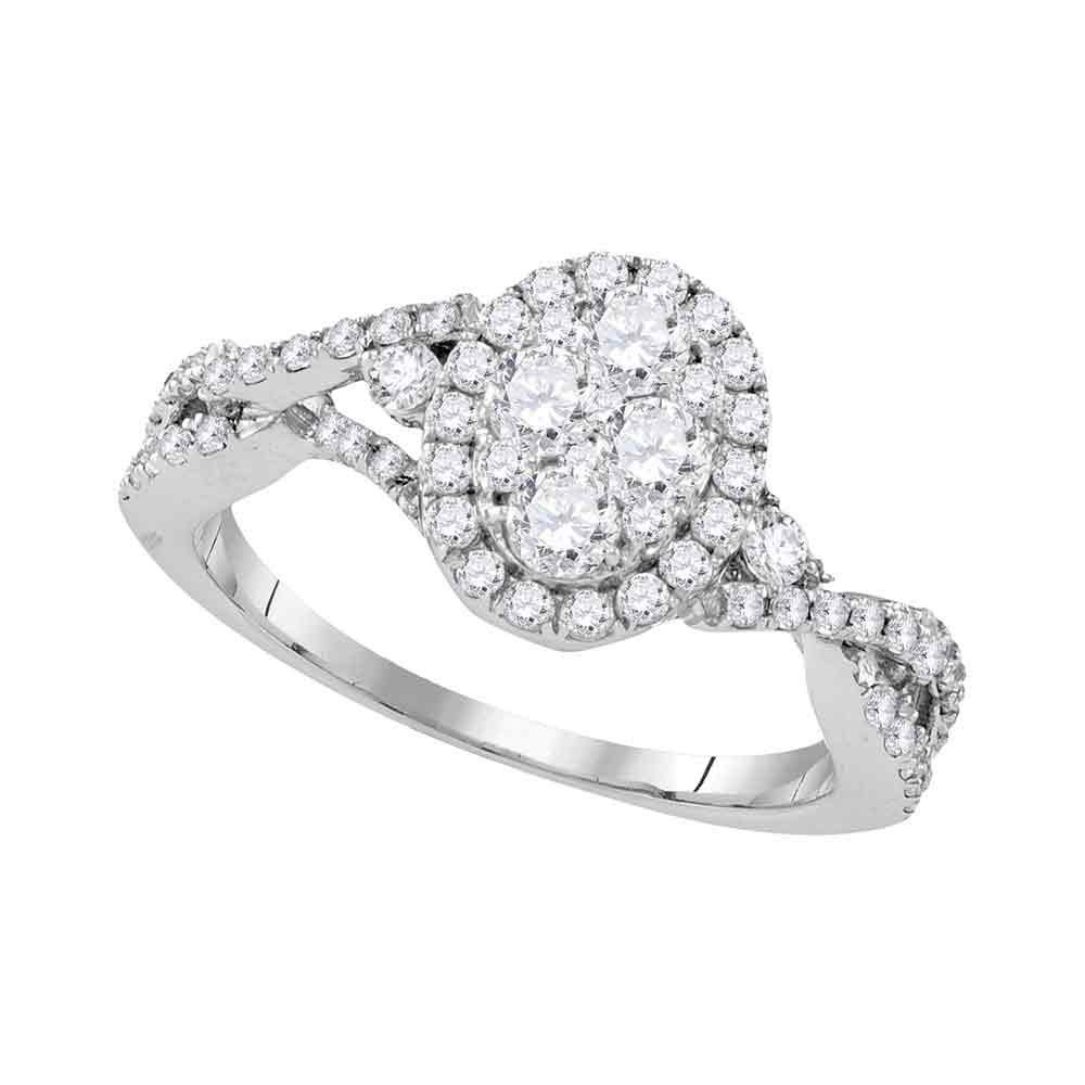 REF-101Y9X ---- 1 CTW Round Diamond Cluster Bridal Wedding Engagement Ring 10kt White Gold