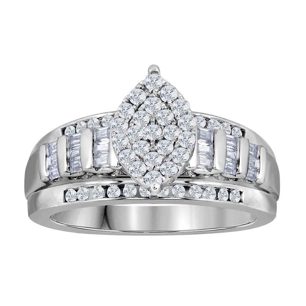 REF-57R3H ---- 1 CTW Round Diamond Cluster Bridal Wedding Engagement Ring 10kt White Gold
