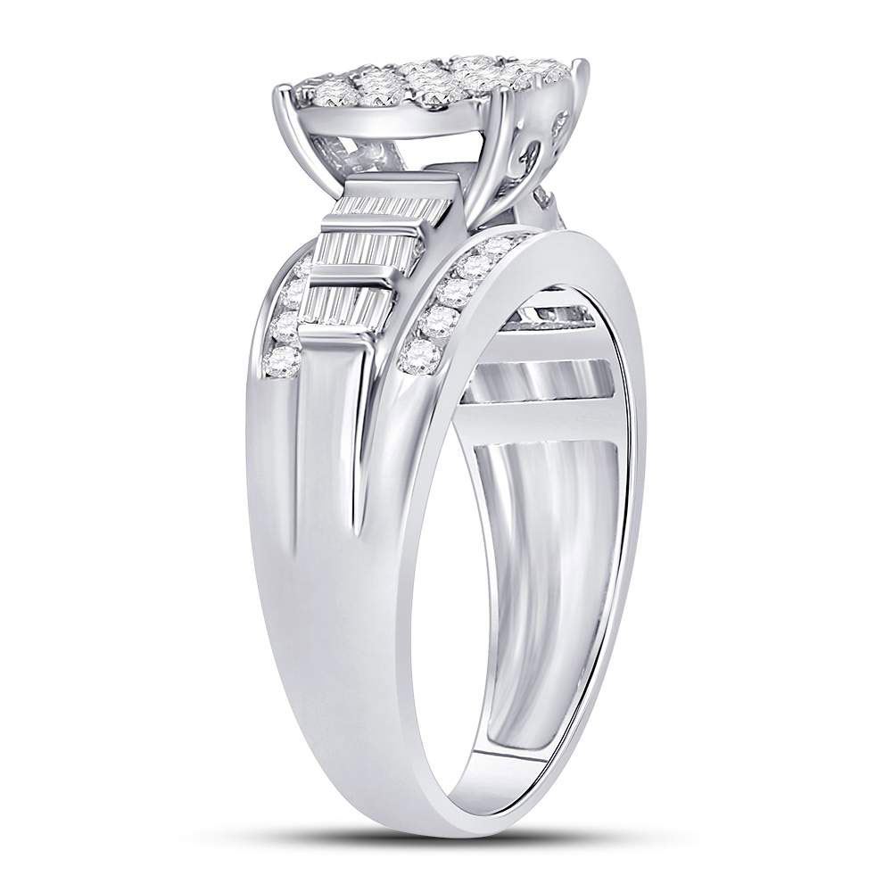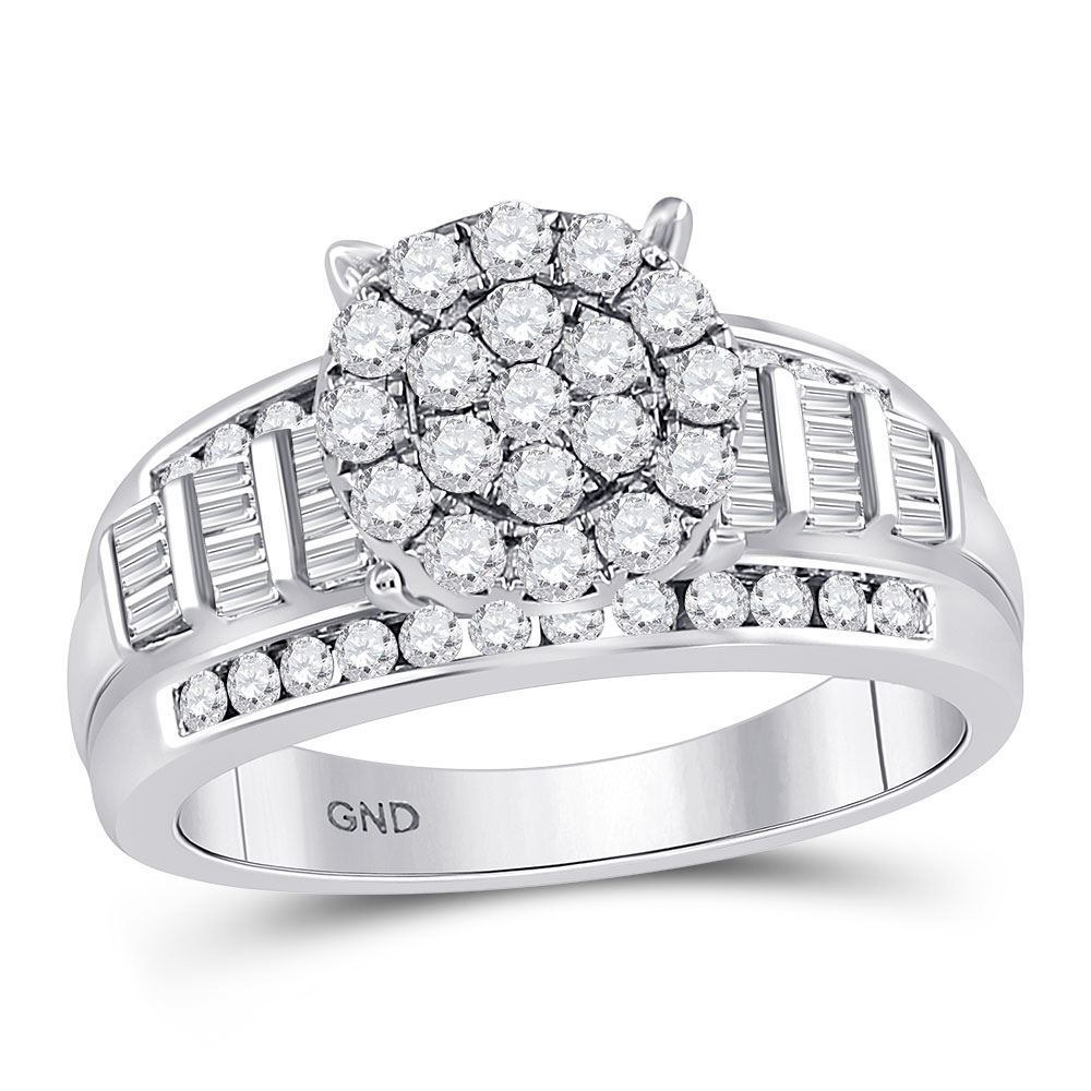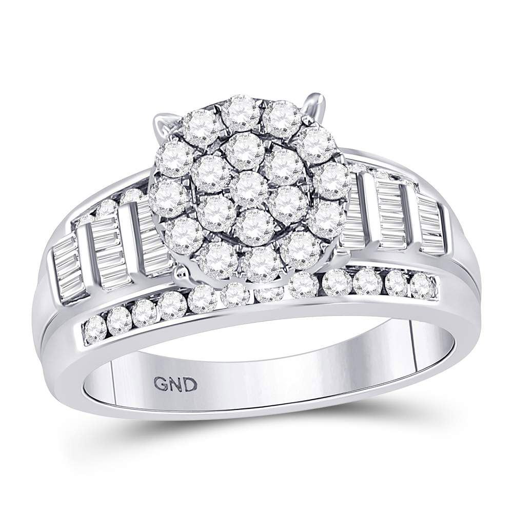 REF-57T3K ---- 1 CTW Round Diamond Cluster Bridal Wedding Engagement Ring 10kt White Gold