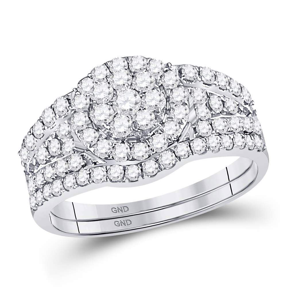 REF-65W9F ---- 1 CTW Round Diamond Cluster Bridal Wedding Engagement Ring 14kt White Gold