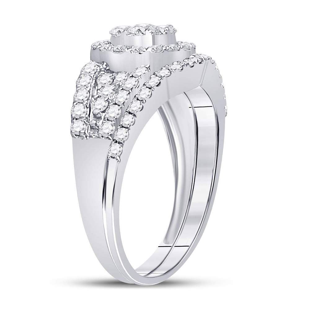 14kt White Gold Womens Round Diamond Flower Cluster Bridal Wedding Engagement Ring Band Set 1.00 Cttw