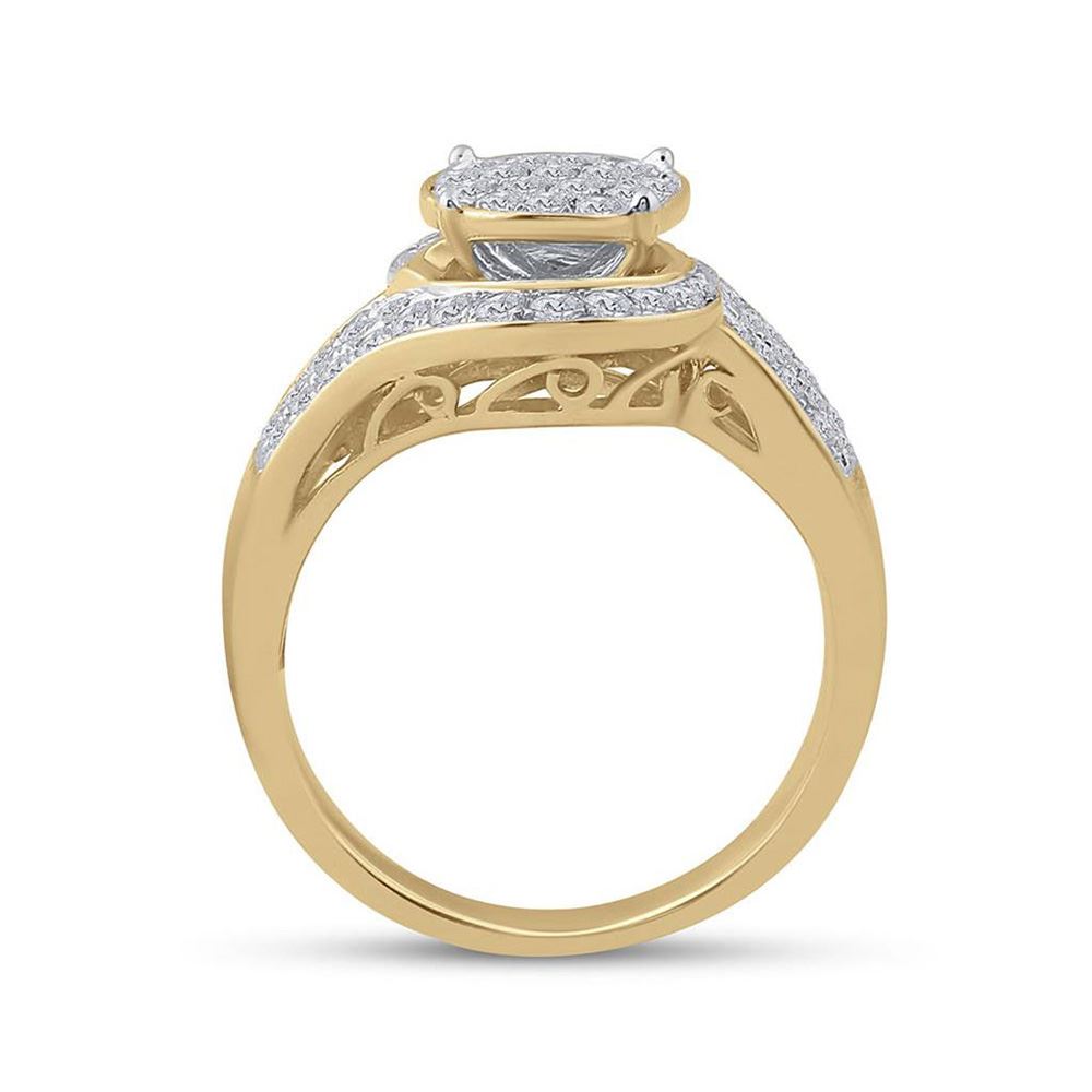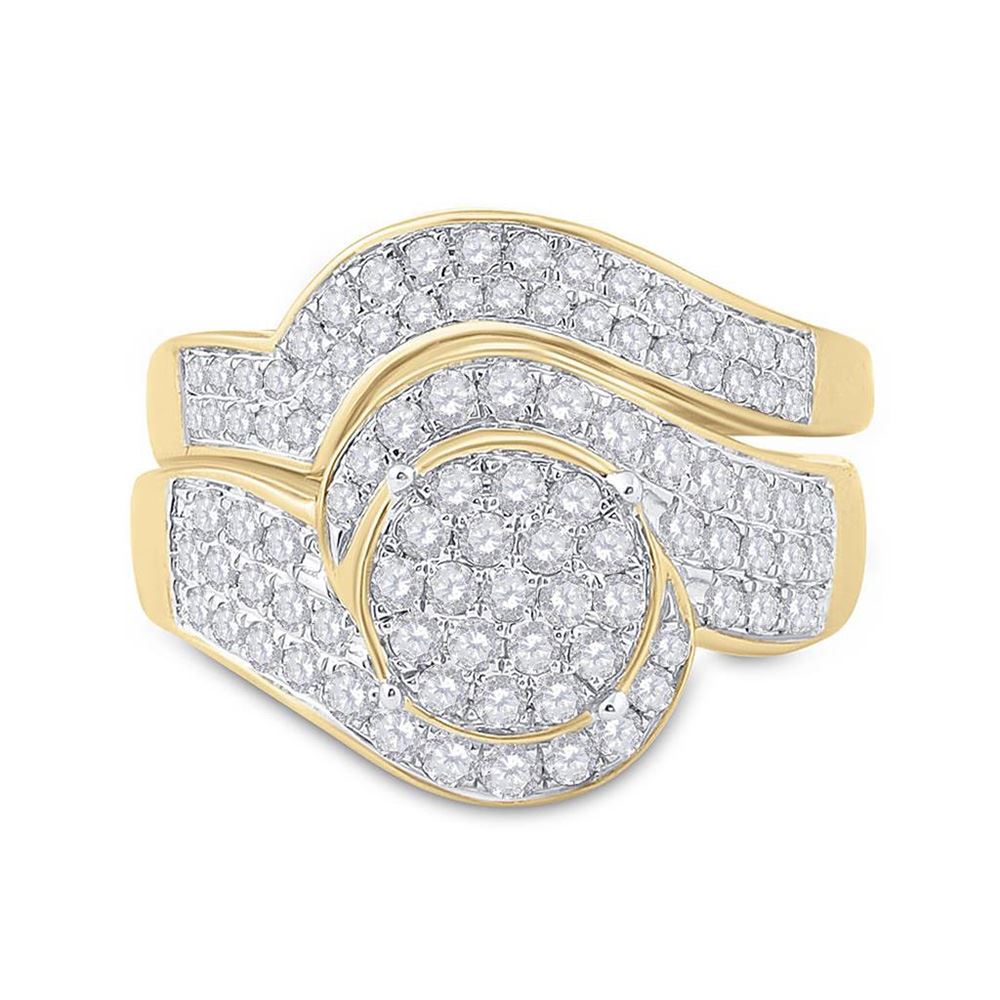 14kt Yellow Gold Womens Round Diamond Cluster Bridal Wedding Engagement Ring Band Set 1.00 Cttw