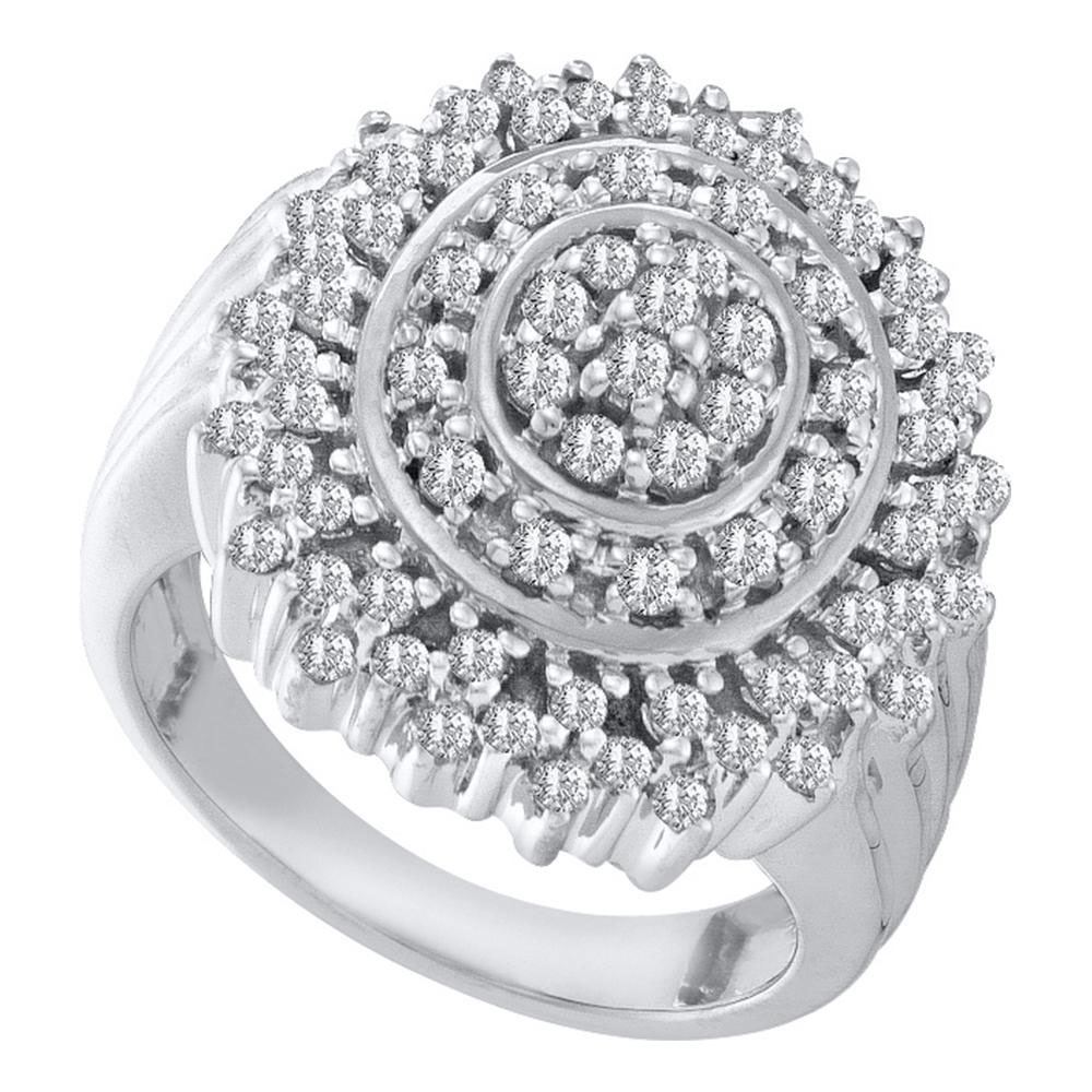 10kt White Gold Womens Round Diamond Concentric Circle Cluster Ring 1.00 Cttw