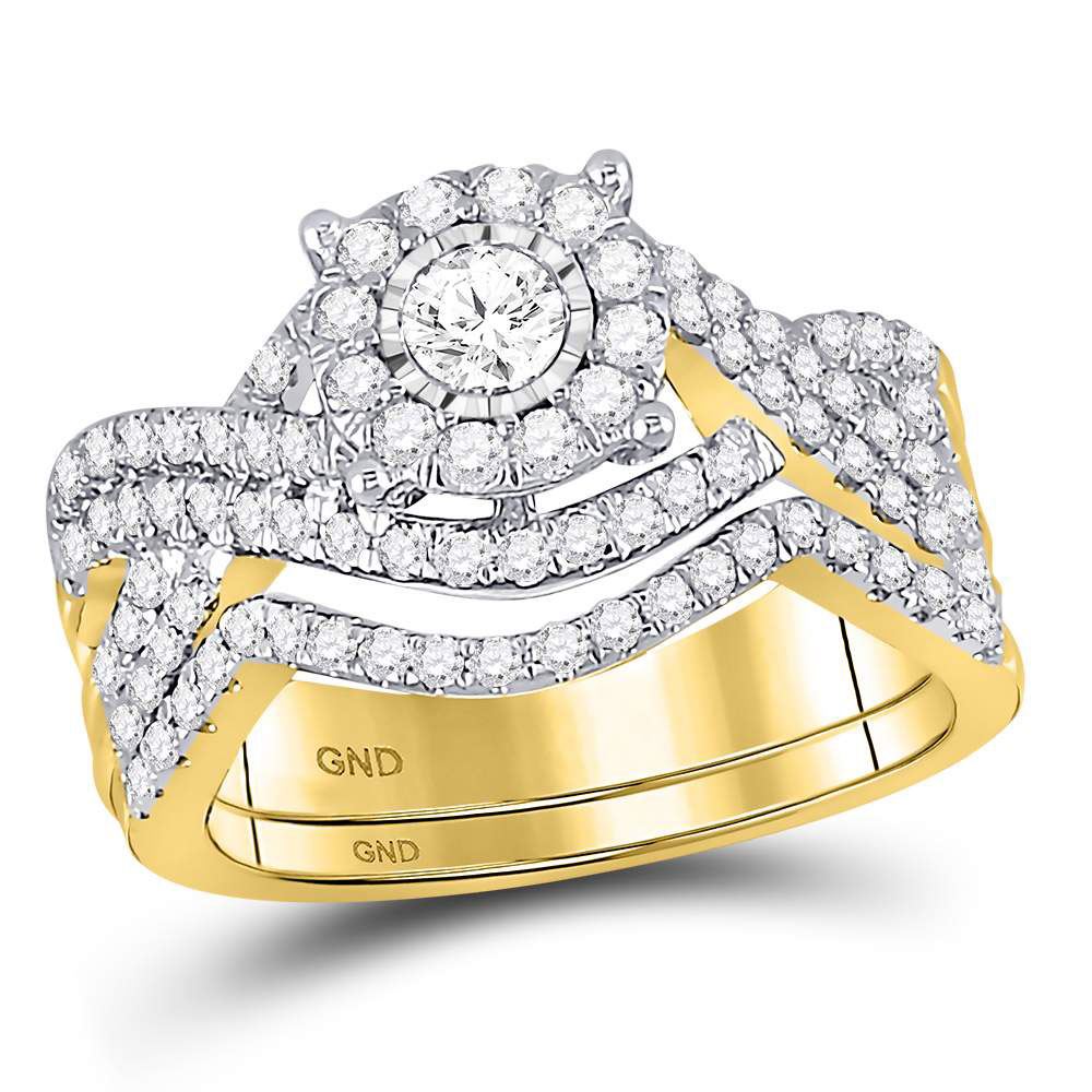10kt Yellow Gold Womens Round Diamond Contoured Bridal Wedding Engagement Ring Band Set 1.00 Cttw