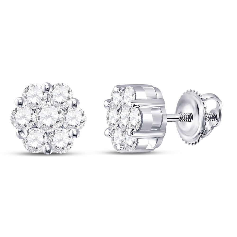 14kt White Gold Womens Round Diamond Flower Cluster Earrings 1.00 Cttw