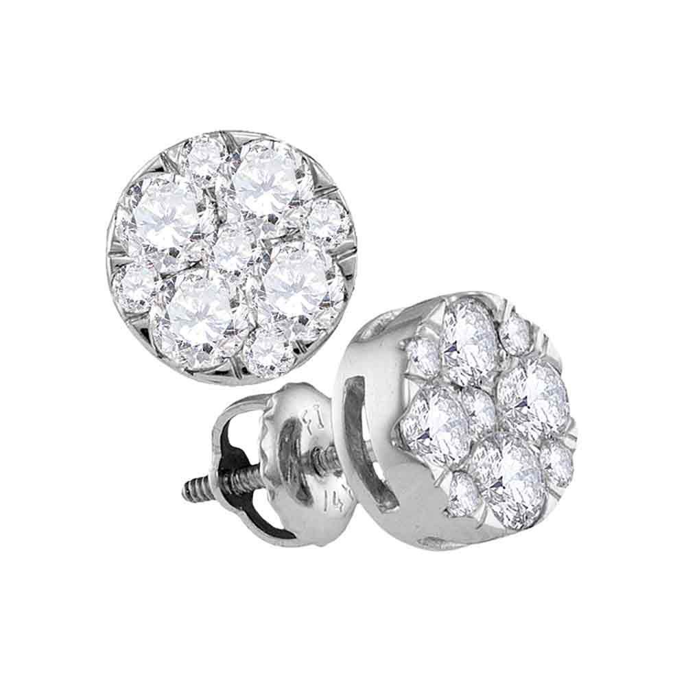 14kt White Gold Womens Round Diamond Flower Cluster Earrings 1.00 Cttw