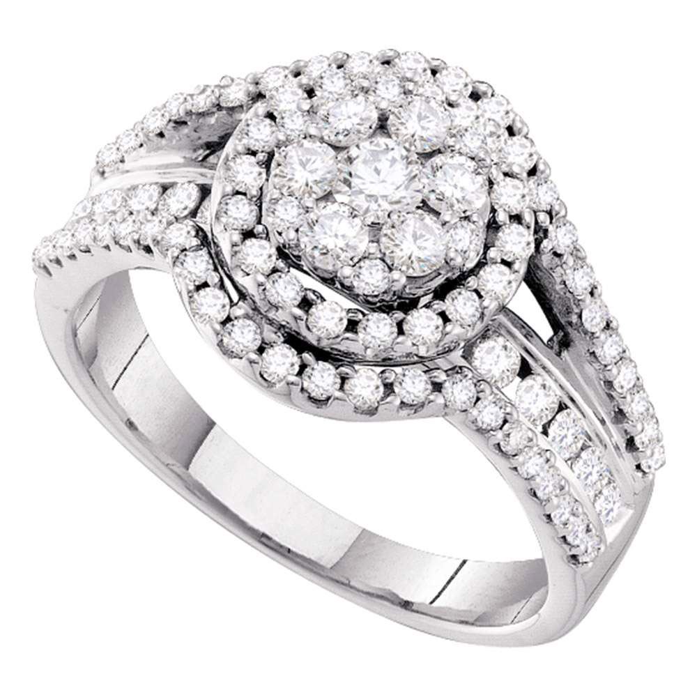 REF-95H9W ---- 1 CTW Round Diamond Framed Flower Cluster Cocktail Ring 14kt White Gold